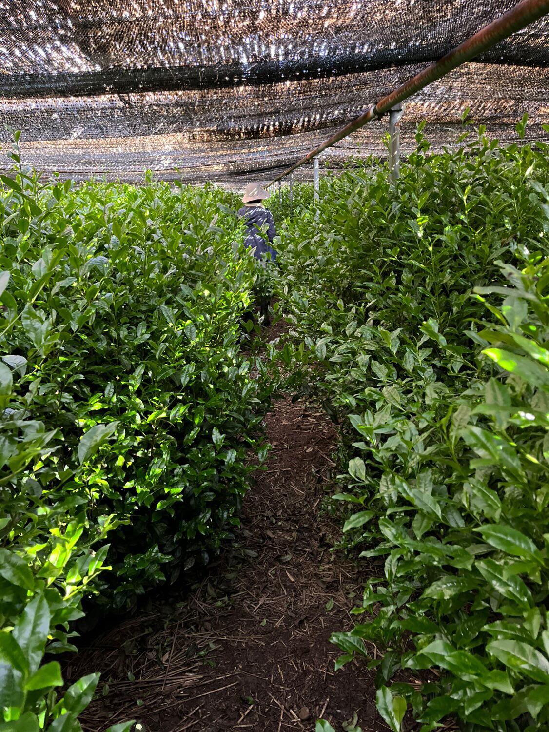 伝統栽培である、こも(菰)で茶園を被し、茶葉を栽培されています。